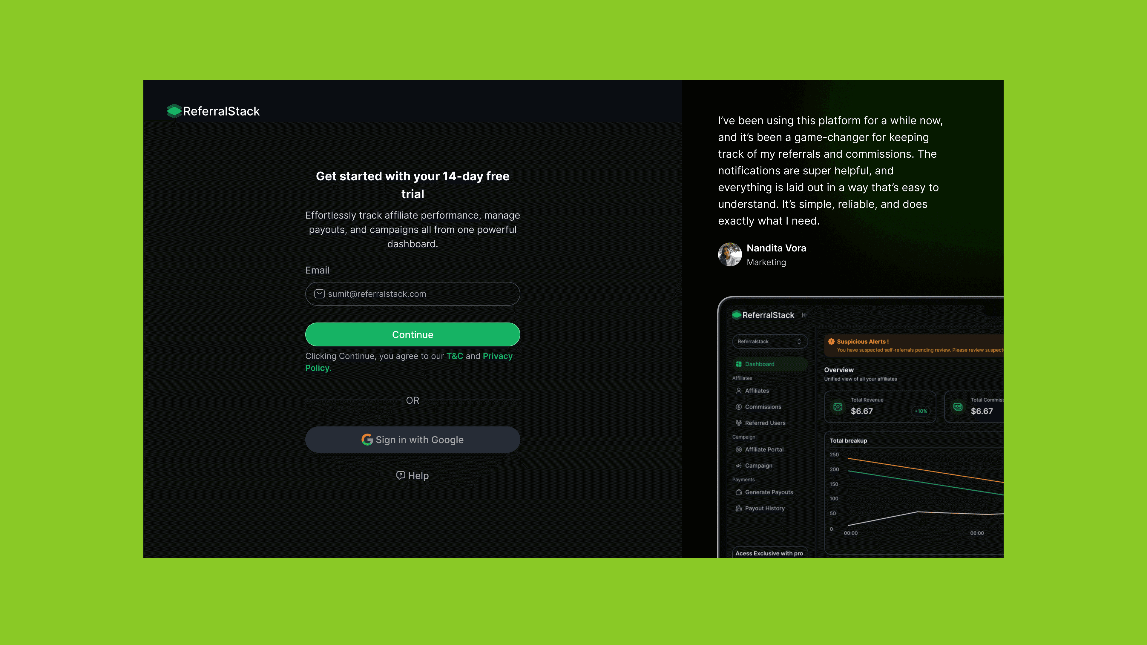 When it came to implementation, the focus was on delivering a truly unified and intuitive experience. Referral Stack’s onboarding was designed to be no-code and frictionless, allowing businesses to launch affiliate programs in less than ten minutes a dramatic improvement over competitors. The platform enabled fully customizable commission structures, supported branded affiliate portals, and allowed for seamless management of multiple programs. Real-time fraud detection and automated payouts via Stripe and PayPal were integrated at the core, with every workflow optimized for both desktop and mobile use.