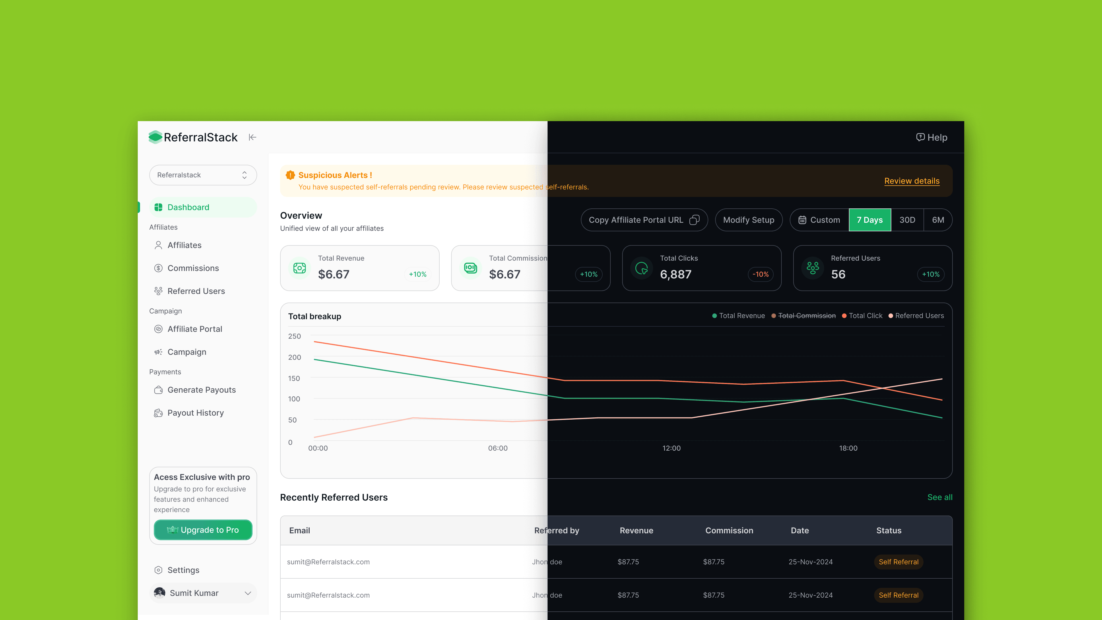 Referral Stack is a SaaS platform focused on making affiliate management effortless for SaaS startups, digital creators, marketers, and their partners. The product was designed and shipped in one month, with a robust design system supporting both dark and light modes to ensure team alignment and ease of use. My role spanned product management, research, competitive analysis, and end-to-end UX/UI design.